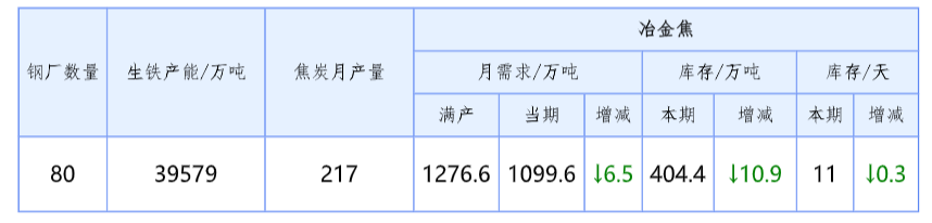 二、部分鋼廠冶金焦庫(kù)存匯總(4月6日—4月13日)