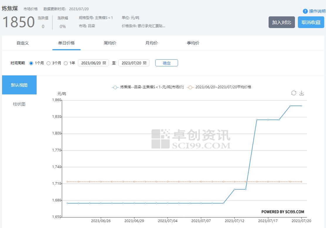 三、呂梁地區(qū)近一月主焦煤價格變化曲線
