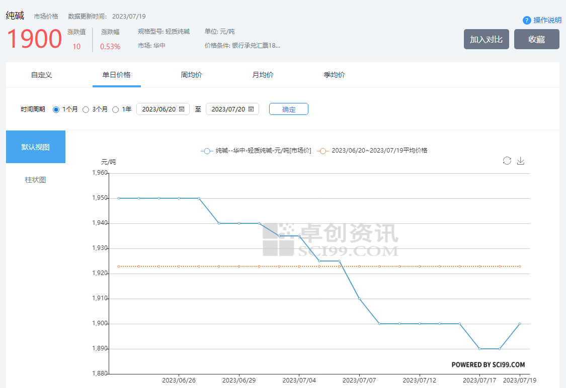 五、玻璃用純堿近一月價(jià)格曲線